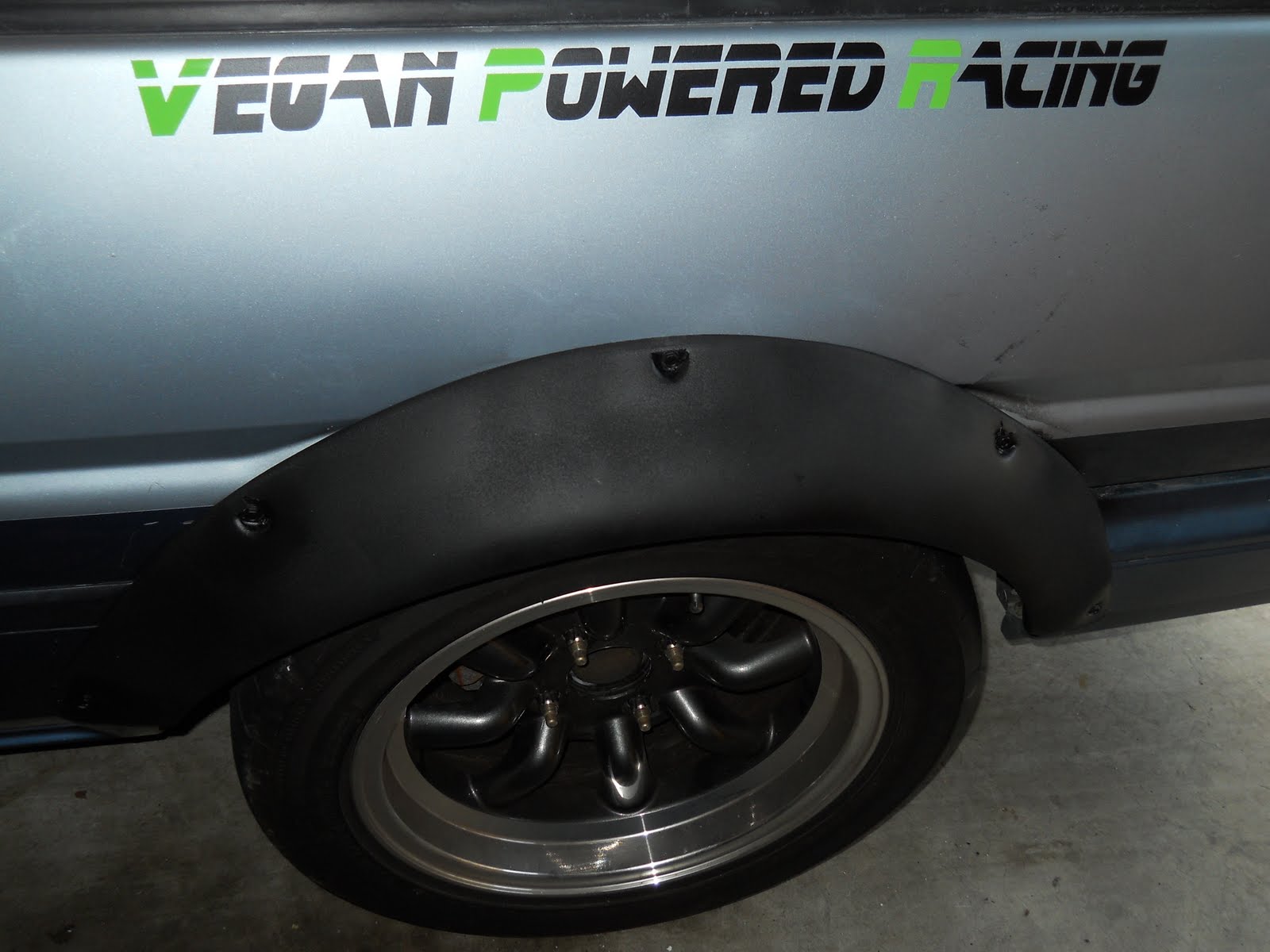So the old AE86 gets some work today. Additional graphics were added, headers wrapped, heat shield added, radio removed, rear fender flares painted & installed.